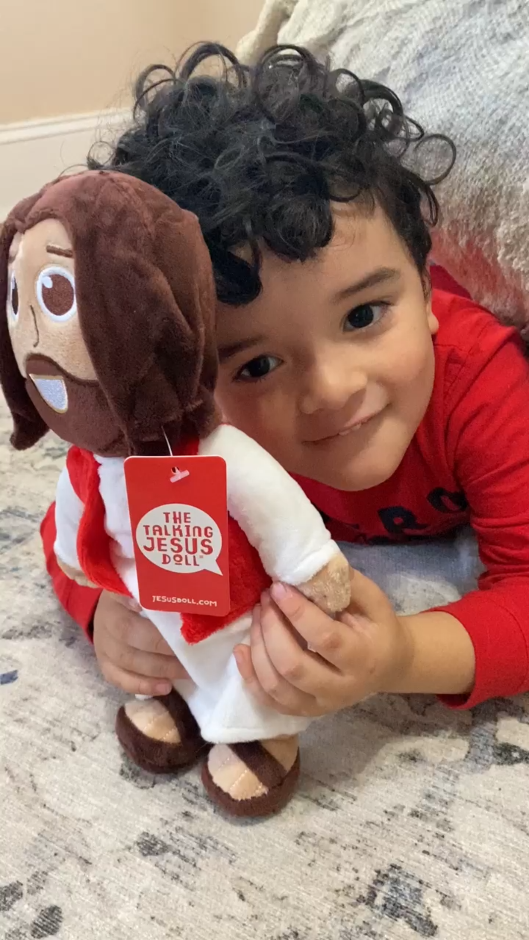 Nos sentíamos culpables 😦. ¿Por qué no les dábamos juguetes cristianos? Como un Jesús que recitaba versículos de la Biblia. Buscamos. Resultó que no existía. Así que lo hicimos.